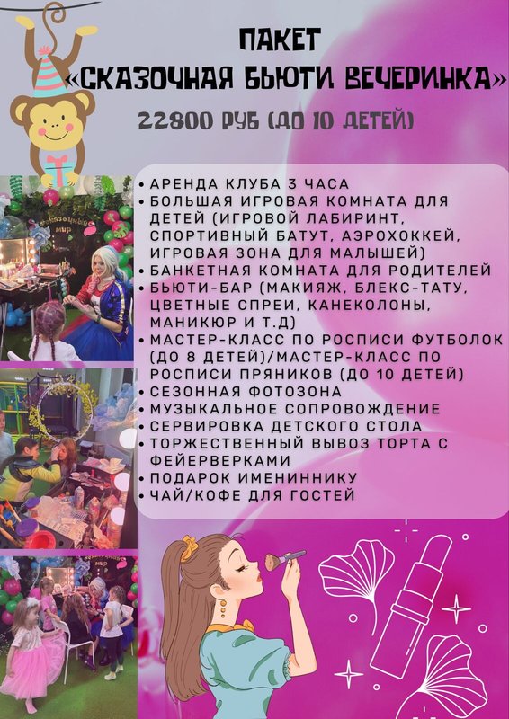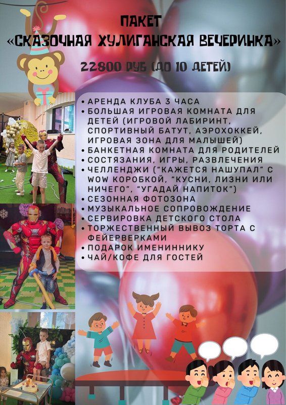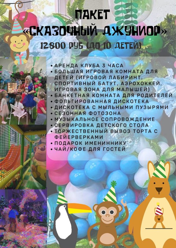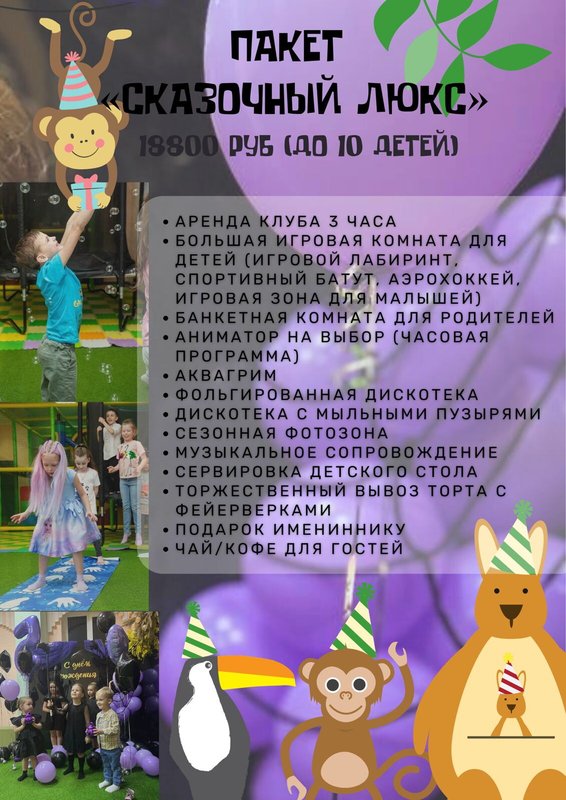 День рождения в детском клубе 8800 руб