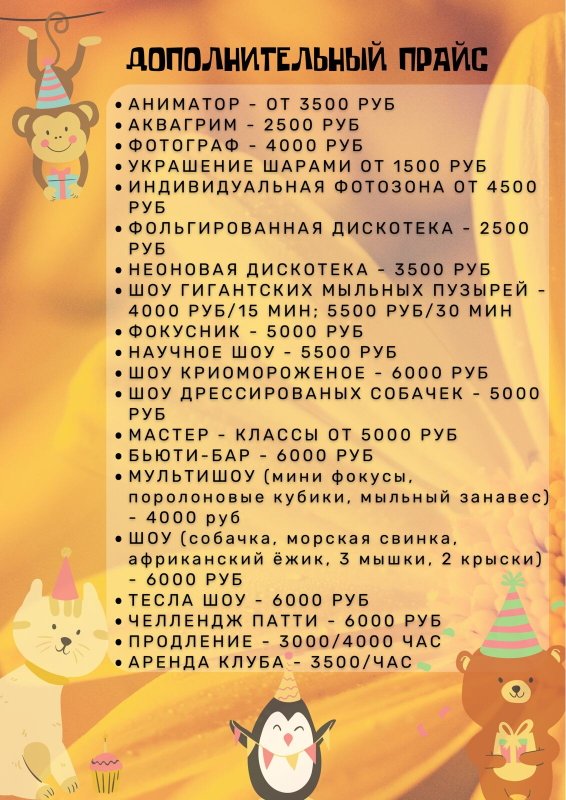 Услуги аниматора